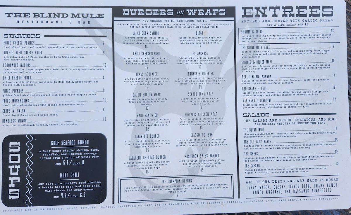 Welcome to The Blind Mule, a gem nestled in the heart of Mobile, Alabama, located at 57 N Claiborne St. Known for its inviting atmosphere and a menu that celebrates comfort food, The Blind Mule is a must-visit destination for both locals and visitors alike. With a friendly staff and a cozy ambiance, this restaurant promises an exceptional dining experience.